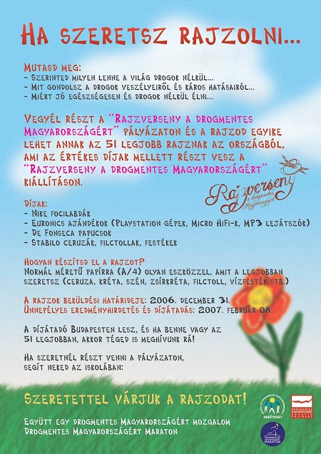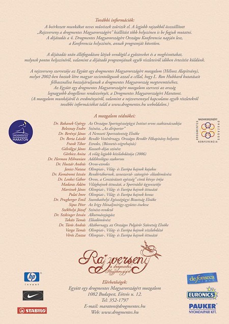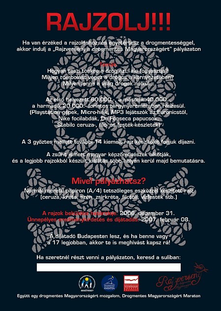 Ahogyan a Drogmentes Magyarországért Maraton a sportra helyezi a hangsúlyt, a Drogmentes Magyarországért Kreatív pályázatok a mûvészetek megannyi ágát vonultatják fel.