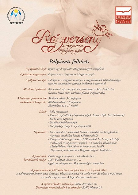 Ezért szervezzük meg minden évben a Drogmentes Magyarországért Kreatív pályázatot valamelyik mûvészeti ágban.