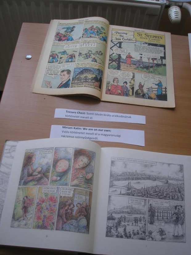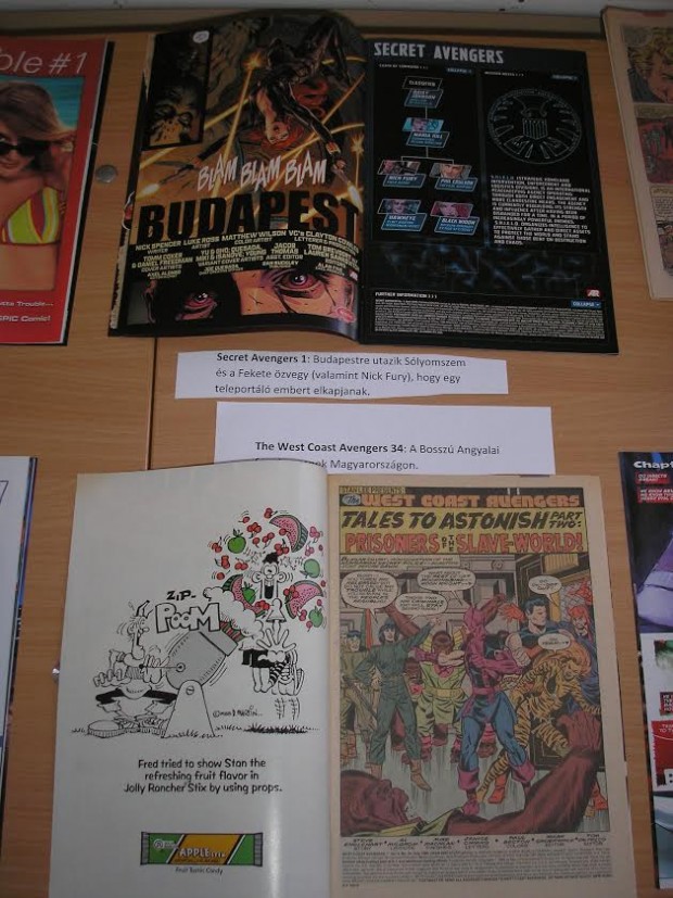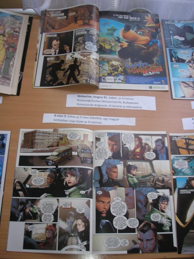 A szegedi kiállítás záró-akkordjaként olyan az Egyesült Államokban megjelent angol nyelvű képregényeket lehetett szemrevételezni, amelyek valamilyen magyar vonatkozással bírtak. Többségükben, csak 1-2 panelen szerepelt az a felirat, hogy a történet Budapesten vagy éppen Magyarországon játszódik, de semmilyen ismertebb épület, személy vagy hazánkhoz kötődő esemény nem volt felismerhető a képkockákon.