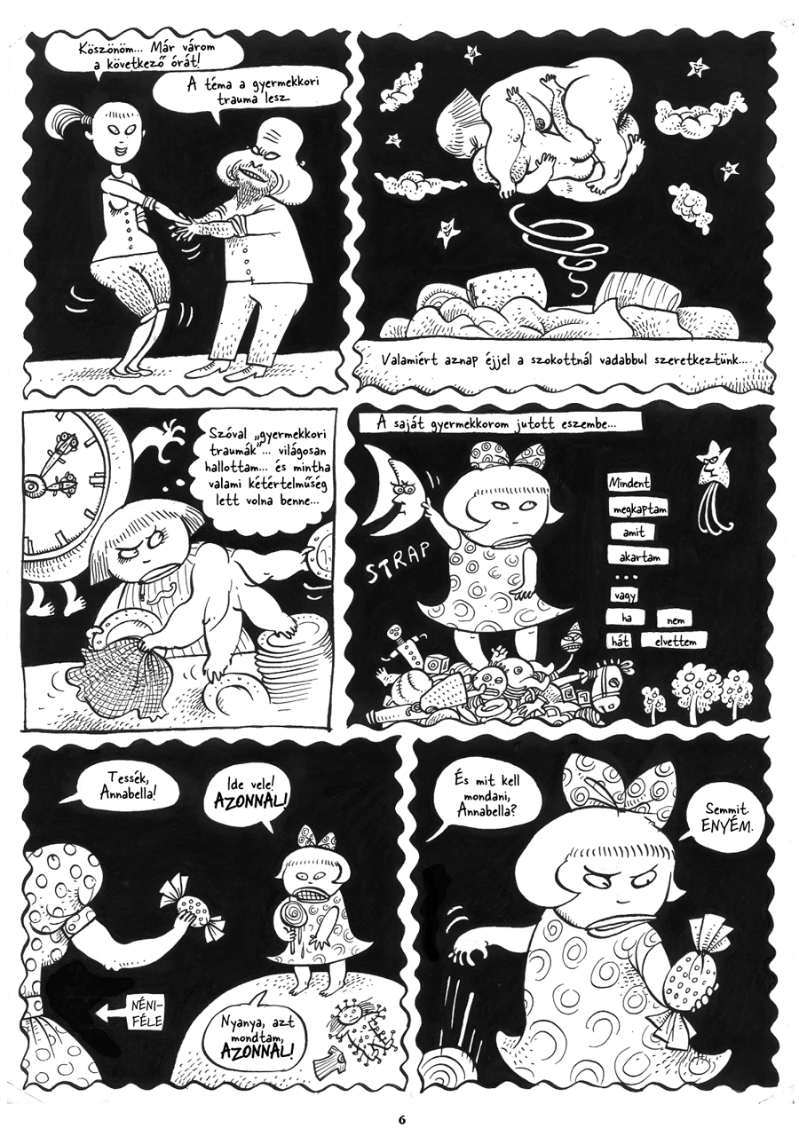 Kati Kovács a képregénymesterség minden csínját-bínját ismeri. Ritmizálása tökéletes, késleltetések, kimondások és elhallgatások, lankák és csúcspontok, az információ pontos adagolása által szórakoztatva építi fel előttünk a szellemi hátteret, közben érzelmileg izgat.