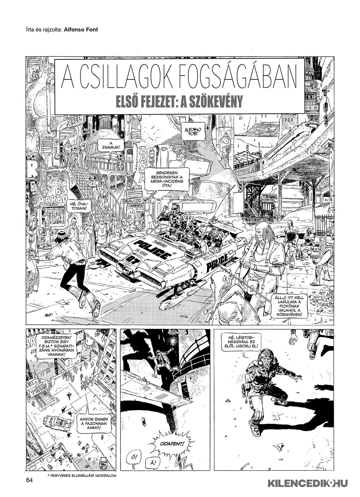 A csillagok fogságában eredetileg a spanyol Cimoc magazinban futott részletekben, előreláthatólag mi is ilyen bontásban kapjuk a történetet, remélhetőleg egészen a végéig. Az Alfonso Font által írt és rajzolt posztapokaliptikus öko-sci-fi legrészletgazdagabb darabja a lapnak. A nem túl távoli jövőben, a novává alakult Nap gyilkos sugarai alatt játszódó történet ugyan nem indul be igazán, inkább egy kis világalapozásra szolgál ez a 12 oldal, viszont egyszerűen káprázatosan van megrajzolva.