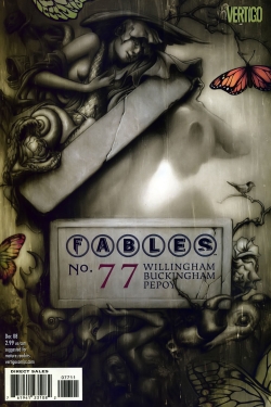 Fables 77: A 77. résszel új történet kezdődik, mely továbbgombolyít több háborús szálat is, a legtöbbet a mundy világban, de a vezérfonal a Homelandben zajlik, ahol megtudjuk, hogy a birodalom lefejezése után általános zűrzavar lett úrrá, a kormányzók, királyok ellen fellázadnak, a fosztogatók pedig rég nem adódó esélyhez jutnak. Egy ilyen fosztogató párost követünk, akik mohóságuknak köszönhetően nagy bajt okoznak, kiszabadítják ugyanis a borítón is látható alakot. Még nem tudjuk, hogy kit is pontosan, csak találgatni lehet, mert a szám ezzel a cliffhangerrel zárul, de sok jót nem sejtet egy leláncolt koporsóból előmászó sápadt alak, akit még a birodalom is jobbnak látott elzárva tartani.