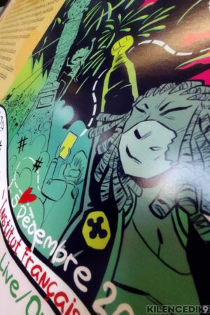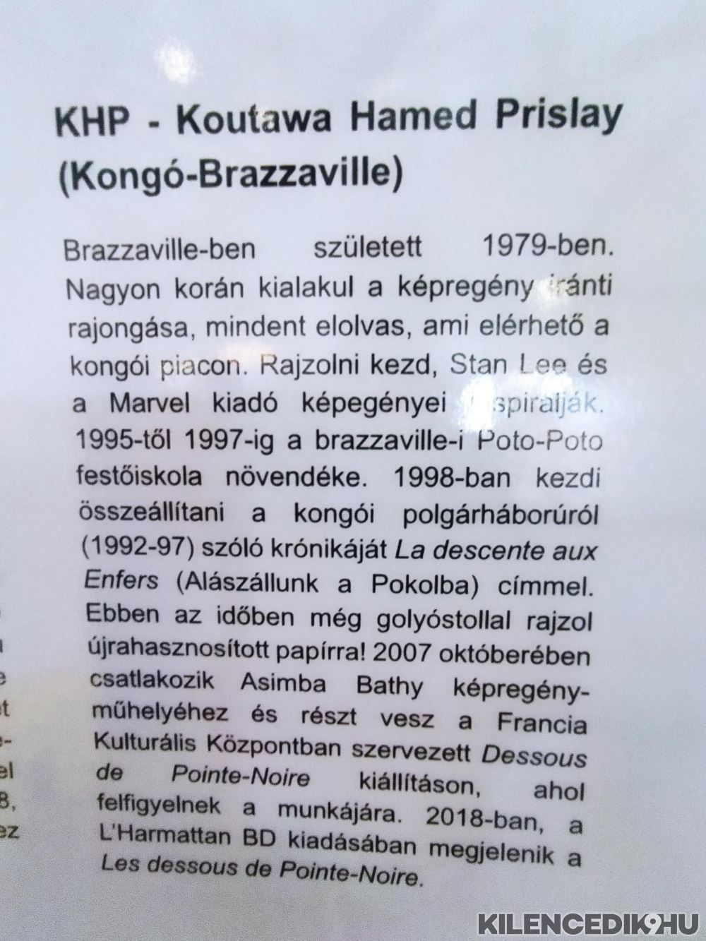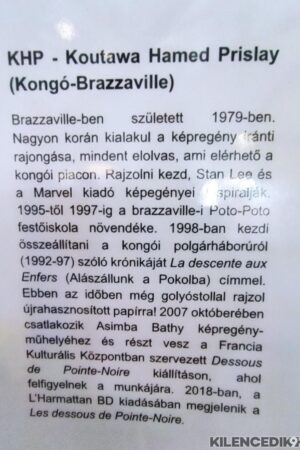 A megnyitó vendége KHP, 44 éves kongói alkotó, jelenleg Franciaországban él. Az, hogy ez megtörtént, így alakult, saját szavai szerint a képregénynek köszönhető. Amióta emlékszik, rajzol. Golyóstollat használ. Ez a sajátos eszköz sajátos képi világot eredményez. Magyar „rokona” Vass Mihály, aki ugyancsak az alapvetően nem művészeti, hanem hétköznapi használati tárgyként értékelt golyóstollal hozott létre már sok-sok fantasztikus képregényoldalt.