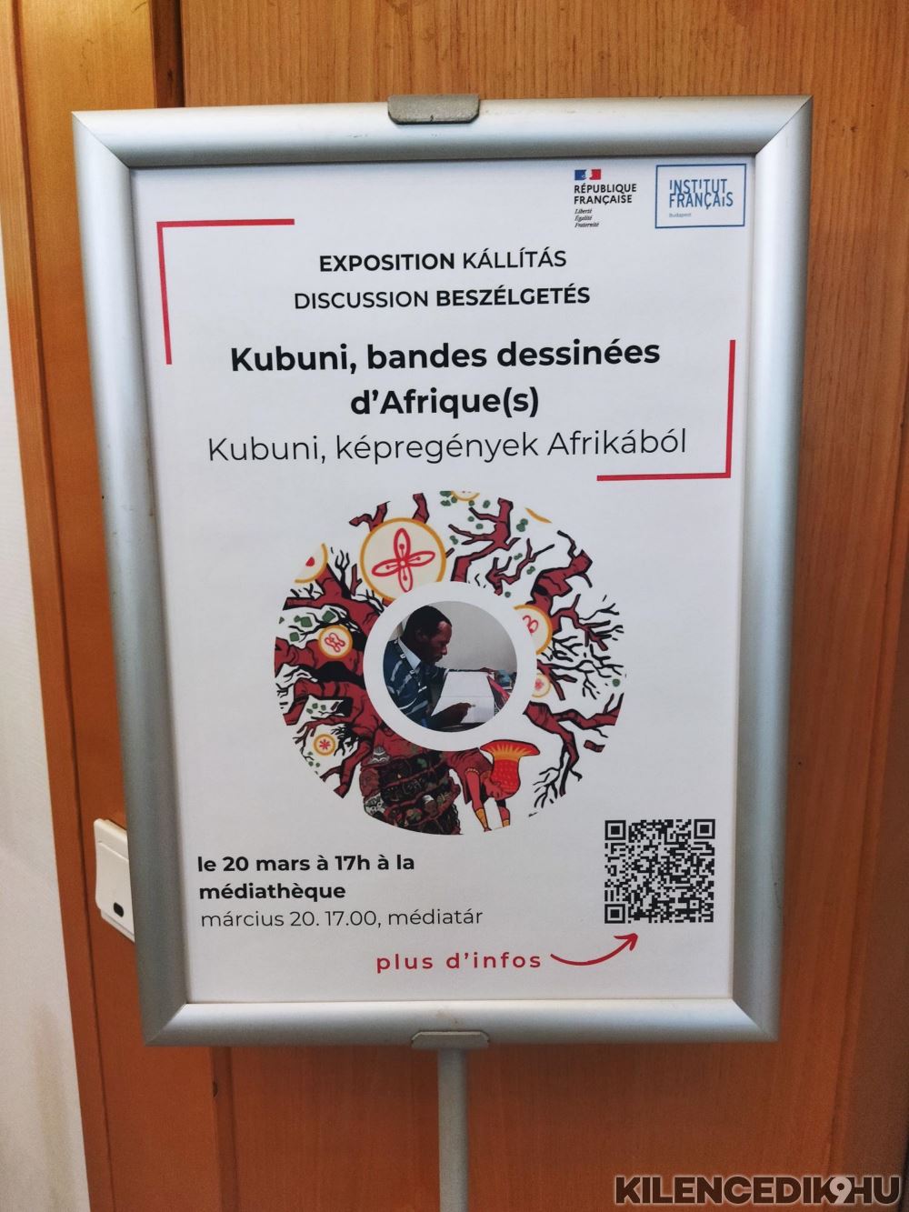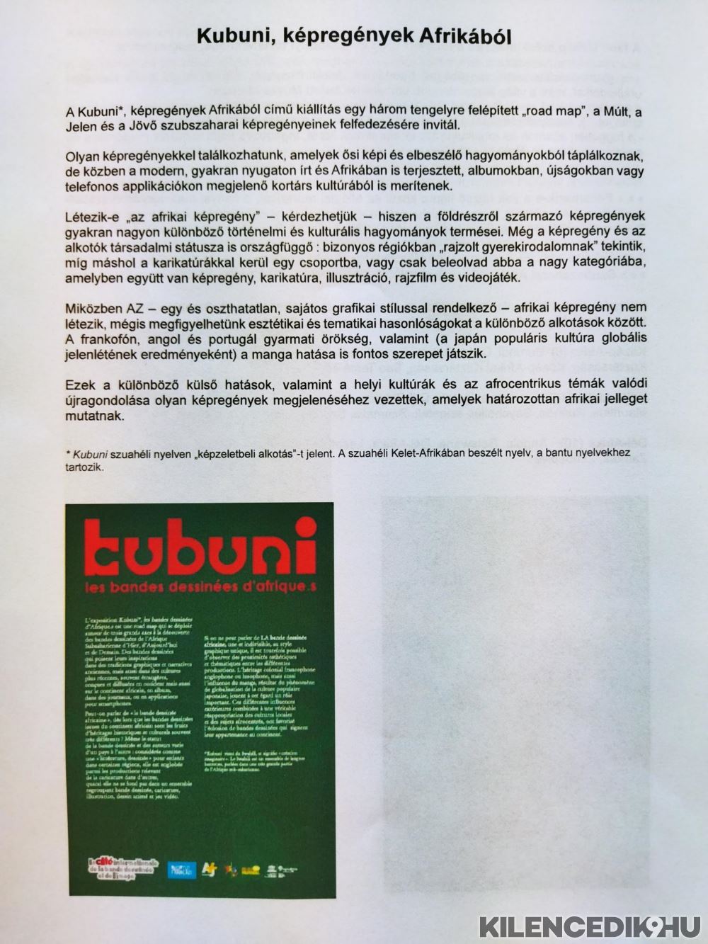 Odaérek. A recepciónál nagy plakát hirdeti a KUBUNI című kiállítást. Szuahéliül ez képzelt képeket/dolgokat jelent, tudom meg a megnyitón.
