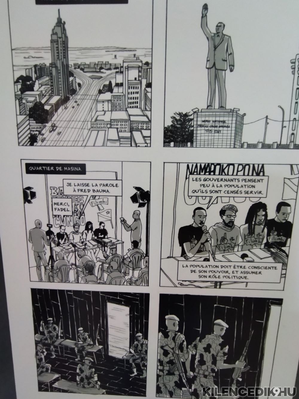 Pálfi Szabolcs filmrendező a kérdező, folyamatosan halad, elsősorban az alkotói módszerre, technikákra, témákra kérdez rá, magáról az afrikai életről kevesebbet tudunk meg. Nem derül ki, hogy a közönség soraiban ülő Al’Mata, szintén kongói alkotónak bujkálnia kellett, többször letartóztatták, üldözték képregényei miatt. Arra, hogy Philippe Liégeois, a Leonard egyik szerzője volt a tanára a közönség soraiban ugyancsak helyet foglaló Bayer Antalnak köszönhetően kerül helyre.