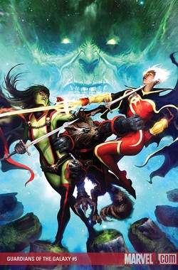 Guardians of the Galaxy 5: Knowheren nagy a felfordulás. Drax eltűnt, így persze rögtön felmerült a gyanú, hogy skrull – utána is küldenek három profi harcost, akiknek lezúzása majdnem fél percét igénybe veszi. Közben felbukkan (az immár női) Starhawk, megy a bizalmatlankodás, találgatás és tanácskozás ezerrel, és csak annyi biztos, hogy senki nem ért egyet senkivel a gubancos szituációt illetően, és hogy innentől csak romlani fog a helyzet. És tényleg: kiderül, hogy Cosmo nem az, akinek mondja magát, és titokban bizony skrullokat rejteget… Cosmo? Ajjaj. Remélem, nem csinálnak rosszfiút belőle, túl markáns karakter ahhoz, hogy csak úgy kidobják jelenlegi pozíciójából, ráadásul ez a Rocket Racoonnal való nézeteltéréseinek a végét is jelentené (pontosabban átalakulását élethalálharccá). De bízom Abnettben és Lanningban, hogy tudják, mi jó a sorozatnak, és a Cosmo és Adam közti dialógusból úgy tűnik, több van itt a háttérben, mint egy egyszerű árulás. Az írók, mint mindig, most is remek ötletekkel, finom humorral és csalhatatlan dinamikai érzékkel kényeztetnek minket. Már a nyitó akciójelenet is nagyszerű, amiben Drax vérbeli harcosként pontról pontra kiiktatja ellenségeit, Adam információszerzése a halott Celestial fejből pedig lélegzetelállítóan hatásos. Aztán ott van még az a pofás kis cliffhanger, ami kétségtelenül gondoskodni fog róla, hogy a következő hónapban is elolvassuk a Guardians of the Galaxyt. Egy dolog van csak, ami nem tiszta: miért szivárognak be a Földöt lerohant skrullok Knowhere-be? Mit nyernek ezzel, mi lehet a tervük? Remélem, igazi választ kapunk, és nem csak egy üres ürügyet arra, hogy ezt a sorozatot is belerángassák a crossoverbe.