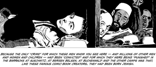 Judenhass. Zsidógyűlölet. Dave Sim alapvetése, hogy minden nem zsidó képregényesnek is legalább egyszer meg kell emlékeznie a holokausztról. Ha már a képregény alapját zsidó szerzők jelentik, akik ugyanúgy ott lehettek volna Auschwitzben, Buchenwaldban vagy más táborban kizárólag a származásuk miatt. Erős mondatok Luther Mártontól, Istóczy Győzőtől, Voltaire-től, Churchilltől és másoktól.