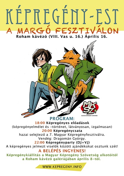A Margó Fesztivál keretein belül zajló est két izgalmas előadással adja meg az alaphangulatot: Korcsmáros Gábor (a legendás magyar képregényrajzoló, Korcsmáros Pál unokája, a Képes Kiadó vezetője) tartja meg „A képregény felfedezése” című szórakoztató és informatív szemináriumát, majd Varró Attila (kritikus, esztéta, a Kult Comics című könyv szerzője) mutatja be a hallgatóságnak az irodalom és a képregény közti párhuzamokat, különbségeket.