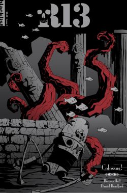 Még jó hónapokkal ezelőtt egyik kedvenc blogom harangozta be hatalmas csinnadrattával ezt az érdekes füzetet, valamint kiadóját az újonc, de rendkívül ígéretes Blacklist Studiost. Honlapjuk alapján idén nyáron két címmel hódítanak, melyek közül az első ez a Mignola-hatásokban tobzódó, mégis forgatókönyve alapján azoknak ellentmondani próbáló képregény. A borító például egyből adja is magát: mintha csak Mignola készítette volna, ám érezni, hogy valami más van itt, mint szimpla másolat. Az alakok másként szögletesek, rajzfilmszerűbbek, és ahol kell, még groteszkebbek, mint például a szerencsésebb Hellboy-füzetek paneljein láthatóak. Na de ez nem lehet probléma, főleg ha a végeredmény egy olyan érdekes olvasmány, mint az R13. Tévedés ne essék, én csak nagyon ritkán nézek utána külföldi kritikáknak egyes füzetekről, mielőtt el nem olvasnám én magam az adott képregényt, de most nem bírtam ki. Gyakorlatilag ez a füzet három perc alatt kivégezhető, és a sztori sem tör magas babérokra. Ez másként és máshol hat: a történetet a látvány utasítja hatalmas erővel maga mögé, és a Mignola füzetek néhol túlzsúfolt narrációja és párbeszédei helyett itt szinte csak képeket kapunk. Csak sodródik az olvasó a némaságban, melyet néha egy-egy felkiáltás, vagy egy egyszavas mondat tör meg, csak hogy aztán még gyorsabban peregjenek „szótlanul” az események. A forgatókönyv egyáltalán nem gyenge vagy rossz, csak itt egy érdekes alaphelyzettel kompenzálják azt, hogy egy sztori apró kövekből kirakva váljon teljessé. Egy tipikus ponyvás felütés, ezúttal tengeri környezetben, néhány igen ötletes csavarral, és mindjárt nem hiányoznak azok a fránya betűk. Tipikus ködösítés van a főhősnek kikiáltott robot múltja körül, ami még pár részt borítékol, de a legfontosabb a felütés: egy robotnak látszó valami egy hajón, ahogy egy csápos szörnyeteggel küzd! Ezt először fel kell fogni, majd mindenképp végignyálazni a képregényt. Játszi könnyedséggel fogynak a lapok, a beemelt drámai szál a természetéből fakadó tempólassítás ellenére sem hat idegenül. A színezővel kiegészülve a rajzoló, Bradford hosszú idő után az első, aki képes távolságot tartani példaképétől, kifejezetten jól állnak neki a hatalmas panelek. Azt pedig mondanom sem kell, hogy szigorúan tartja magát a konkrét panelhatárokhoz, amiket így még elementárisabb erővel szakíthat szét egy-egy jól elhelyezett, hivalkodó hangeffekttel. Ki ez a robottestbe zárt koponya? Hova tart? Mi a múltja? A Blacklist Studios remek új sorozatának következő részeiből vélhetően kiderül. Addig is szempihentetőnek mindenki olvassa a legelső számot.