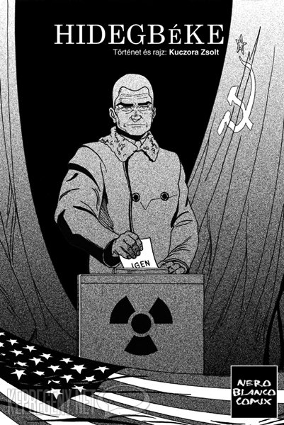 Kuczora Zsolt még a Steampunk pályázatra készítette el első saját képregényét (korábban Bayer Antal forgatókönyvéből dolgozott – Flóra jelenti). Nem tudom, hogy a Hidegbéke története már a pályázat előtt összeállt-e az alkotó fejében, de a végeredmény alapján erről lehet szó, ugyanis a steampunk környezettel nem igazán tud mit kezdeni a szerző. Távoli képeken megjelenik egy békésen pöfögő gőzautó, és ennyi. A fiktív ötvenes években játszódó sztori már hangsúlyosabban emeli be a műfajt a szénpiacot uraló Szovjetunióval és társaival, de ez a háttér semmit nem tesz hozzá a cselekményhez. Ettől még nem zavaró, csak fölöslegesnek tűnik.